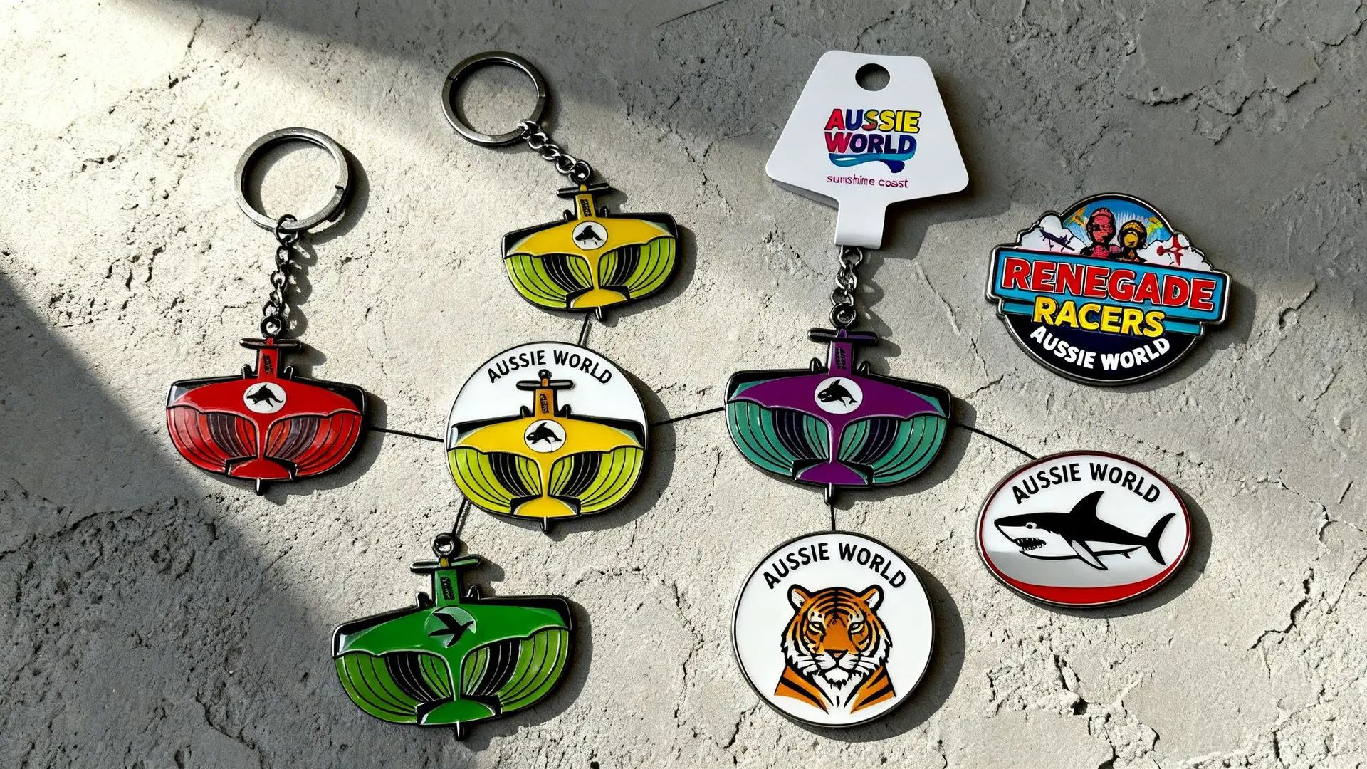 A major theme park destination required a fresh, vibrant range of custom keyrings and pins for their on-site retail stores. The objective was to create durable, high-visibility merchandise that captured the energy of their attractions while being ready for immediate "plug-and-play" retail display.